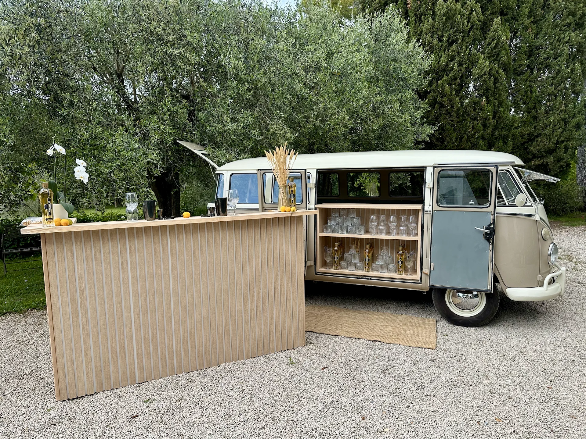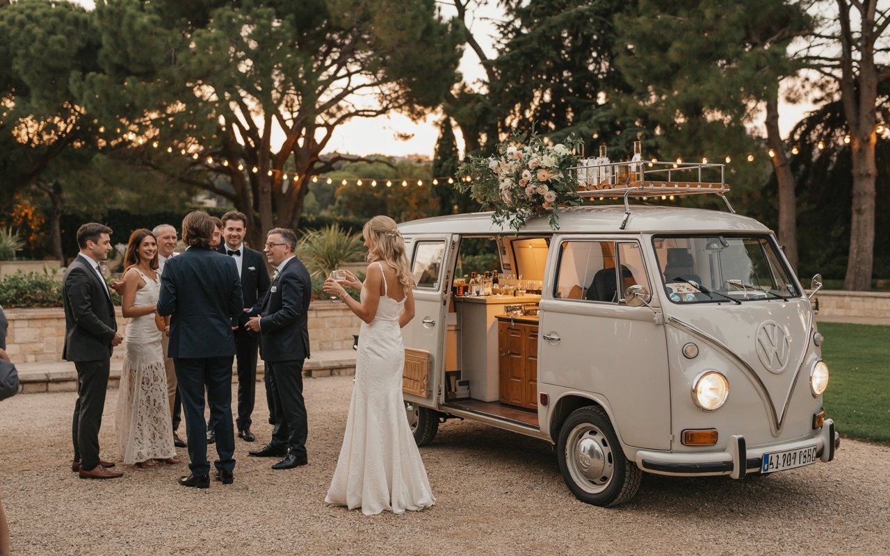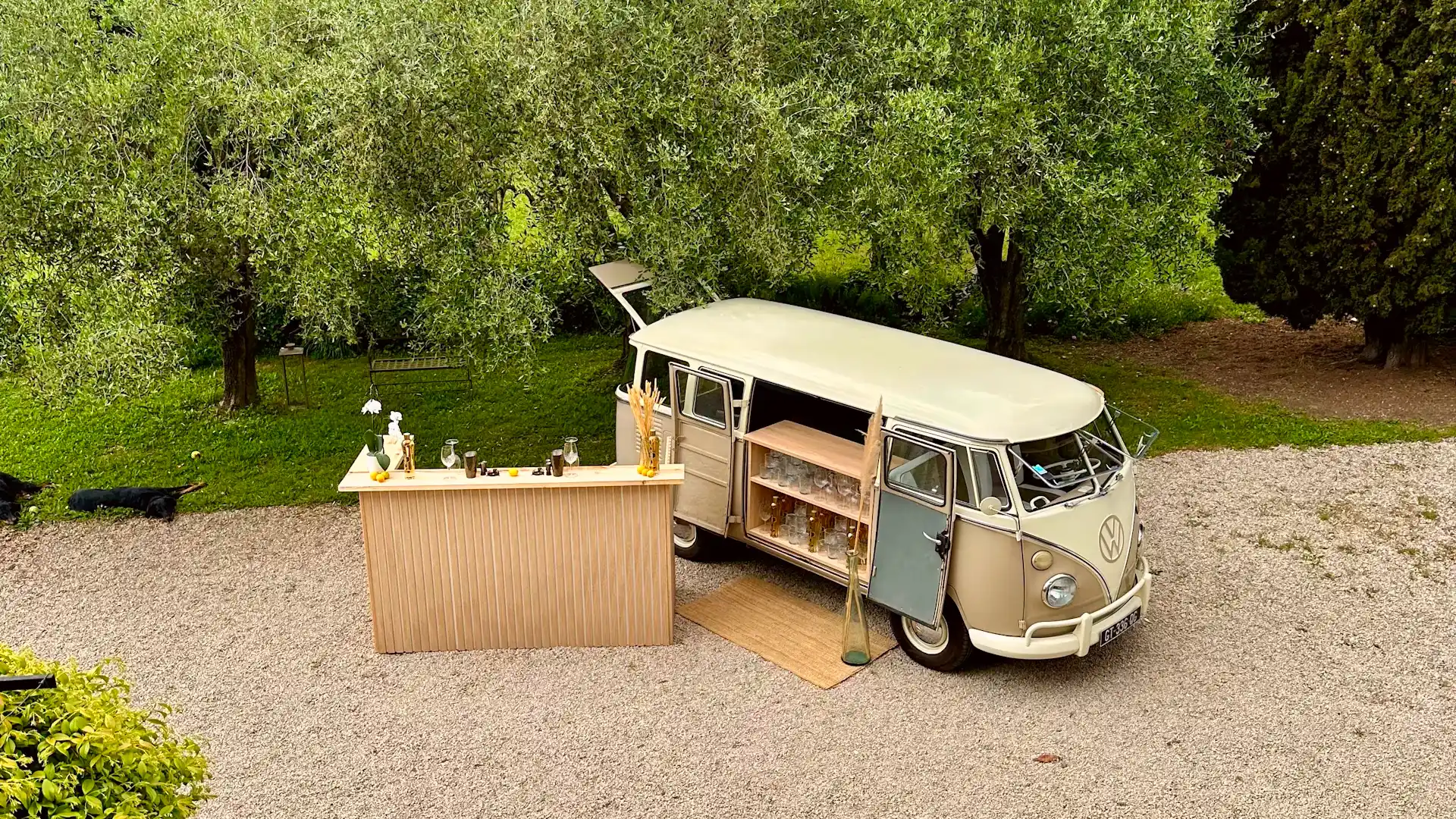Un Combi Volkswagen transformé en bar mobile pour une animation élégante et mémorable.