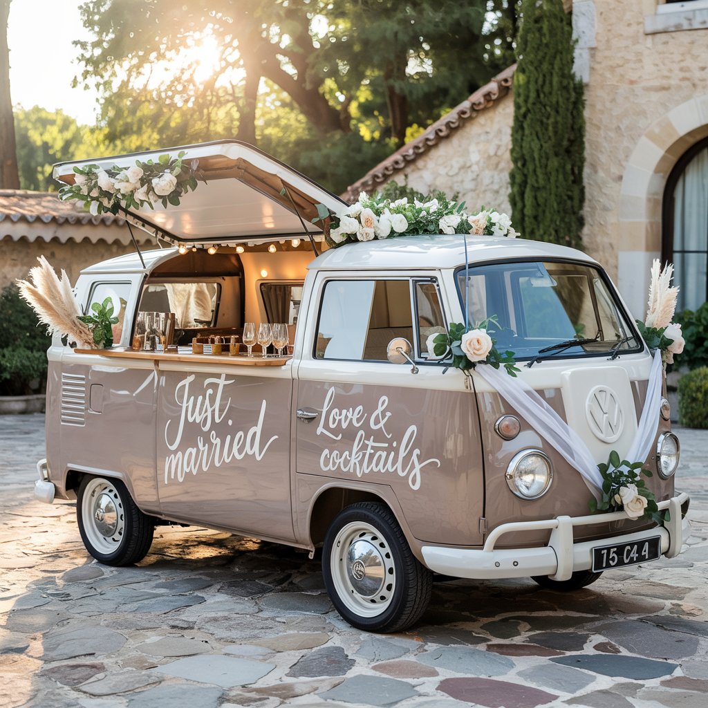 Un Combi Volkswagen transformé en bar mobile pour une animation élégante et mémorable.